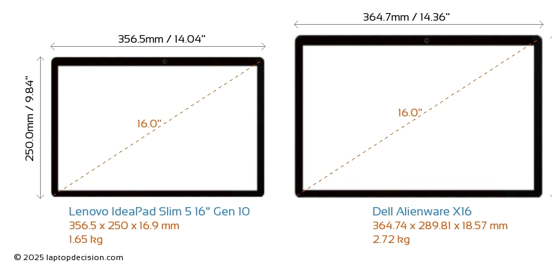 HDMIどちらの IdeaPad Slim 5 16" Gen 10 と Alienware X16 も HDMI ポートを備えています。 IdeaPad Slim 5 16" Gen 10 は 1x HDMI 1.4 を提供し、 Alienware X16 は 1x HDMI 2.1 を提供します。