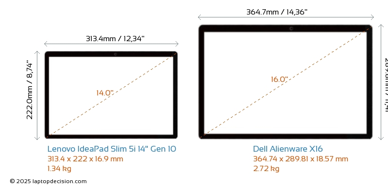 HDMIどちらの IdeaPad Slim 5i 14" Gen 10 と Alienware X16 も HDMI ポートを備えています。 IdeaPad Slim 5i 14" Gen 10 は 1x HDMI 1.4 を提供し、 Alienware X16 は 1x HDMI 2.1 を提供します。