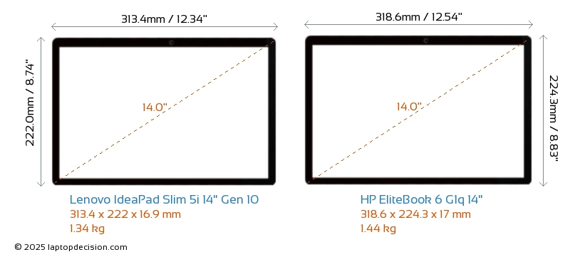 HDMIどちらの IdeaPad Slim 5i 14" Gen 10 と EliteBook 6 G1q 14" も HDMI ポートを備えています。 IdeaPad Slim 5i 14" Gen 10 は 1x HDMI 1.4 を提供し、 EliteBook 6 G1q 14" は 1x HDMI 2.1 を提供します。
