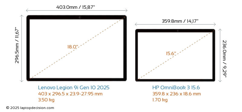 HDMIどちらの Legion 9i Gen 10 2025 と OmniBook 3 15.6 も HDMI ポートを備えています。 Legion 9i Gen 10 2025 は 1x HDMI 2.1 を提供し、 OmniBook 3 15.6 は 1x HDMI 1.4 を提供します。