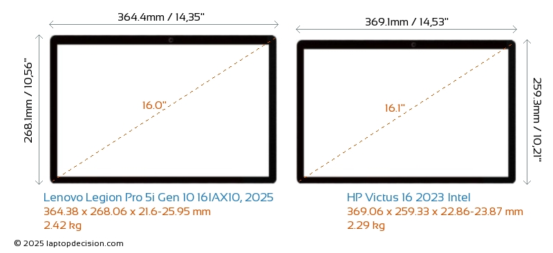 Thunderbolt Legion Pro 5i Gen 10 16IAX10, 2025 は、Thunderbolt 4 ポートを備えています。 Victus 16 2023 Intel には Thunderbolt ポートがありません。