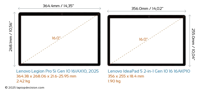 HDMIどちらの Legion Pro 5i Gen 10 16IAX10, 2025 と IdeaPad 5 2-in-1 Gen 10 16 16AKP10 も HDMI ポートを備えています。 Legion Pro 5i Gen 10 16IAX10, 2025 は 1x HDMI 2.1 を提供し、 IdeaPad 5 2-in-1 Gen 10 16 16AKP10 は 1x HDMI 1.4 を提供します。