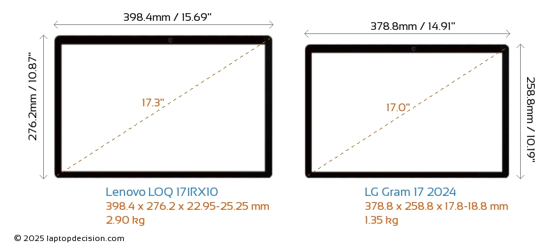 USB両方の LOQ 17IRX10 と Gram 17 2024 は、USB-A ポートを備えています。 LOQ 17IRX10 は 4x USB 3.2 USB-A ポートを持ち、 Gram 17 2024 は 2x USB 3.2 USB-A ポートを持っています。両方の LOQ 17IRX10 と Gram 17 2024 は、USB Type-C ポートを備えています。 LOQ 17IRX10 は 1x USB 3.2 USB Type-C ポートを持ち、 Gram 17 2024 は 2x USB 4.0 USB Type-C ポートを持っています。