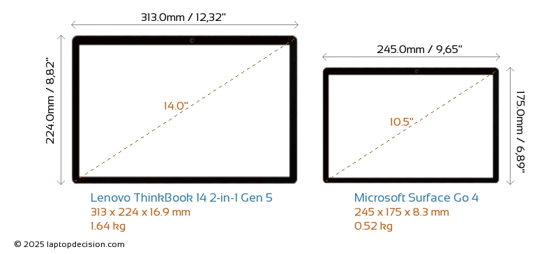 Thunderbolt ThinkBook 14 2-in-1 Gen 5 は、Thunderbolt 4 ポートを備えています。 Surface Go 4 には Thunderbolt ポートがありません。