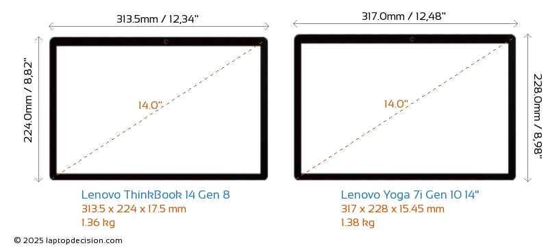 HDMIどちらの ThinkBook 14 Gen 8 と Yoga 7i Gen 10 14" も HDMI ポートを備えています。 ThinkBook 14 Gen 8 は 1x HDMI 2.1 を提供し、 Yoga 7i Gen 10 14" は 1x HDMI 1.4 を提供します。