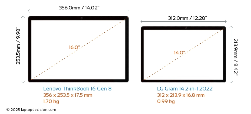 HDMIどちらの ThinkBook 16 Gen 8 と Gram 14 2-in-1 2022 も HDMI ポートを備えています。 ThinkBook 16 Gen 8 は 1x HDMI 2.1 を提供し、Gram 14 2-in-1 2022 は 1x HDMI 2.0 を提供します。