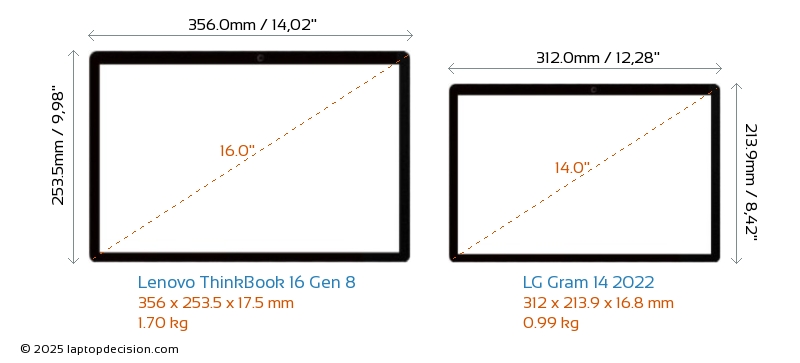 HDMIどちらの ThinkBook 16 Gen 8 と Gram 14 2022 も HDMI ポートを備えています。 ThinkBook 16 Gen 8 は 1x HDMI 2.1 を提供し、Gram 14 2022 は 1x HDMI 2.0 を提供します。