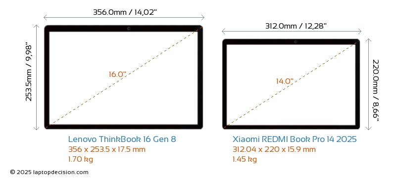 HDMI両方の ThinkBook 16 Gen 8 と REDMI Book Pro 14 2025 は、外部モニターに接続するための HDMI ポート (1x HDMI 2.1) を備えています。