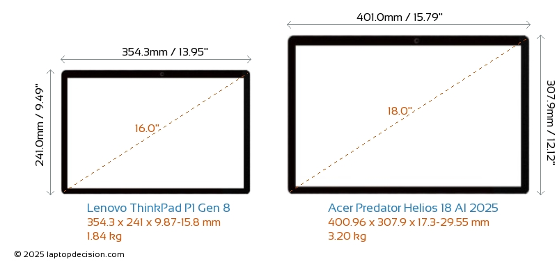 HDMI両方の ThinkPad P1 Gen 8 と Predator Helios 18 AI 2025 は、外部モニターに接続するための HDMI ポート (1x HDMI 2.1) を備えています。