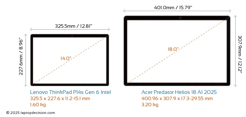 HDMI両方の ThinkPad P14s Gen 6 Intel と Predator Helios 18 AI 2025 は、外部モニターに接続するための HDMI ポート (1x HDMI 2.1) を備えています。