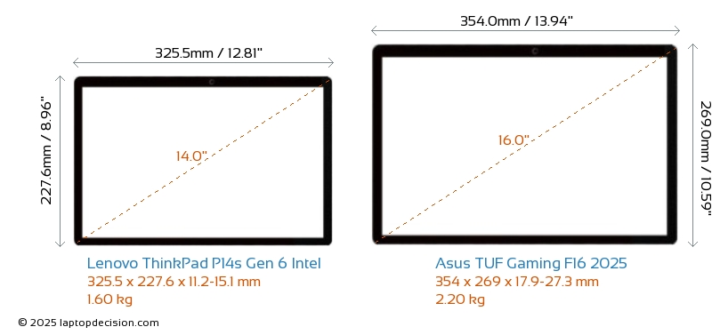 Thunderbolt両方の ThinkPad P14s Gen 6 Intel と TUF Gaming F16 2025 は Thunderbolt 4 ポートを備えています。