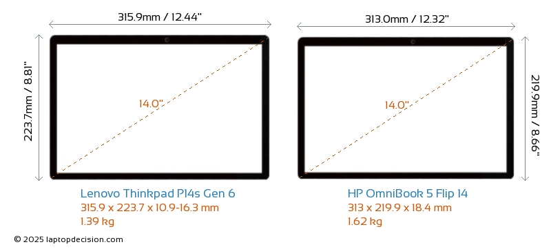 HDMI両方の Thinkpad P14s Gen 6 と OmniBook 5 Flip 14 は、外部モニターに接続するための HDMI ポート (1x HDMI 2.1) を備えています。