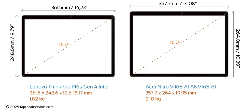 HDMI両方の ThinkPad P16s Gen 4 Intel と Nitro V 16S AI ANV16S-61 は、外部モニターに接続するための HDMI ポート (1x HDMI 2.1) を備えています。