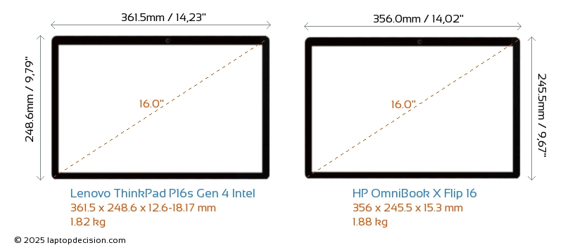 Thunderbolt両方の ThinkPad P16s Gen 4 Intel と OmniBook X Flip 16 は Thunderbolt 4 ポートを備えています。