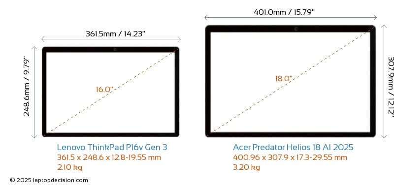 HDMI両方の ThinkPad P16v Gen 3 と Predator Helios 18 AI 2025 は、外部モニターに接続するための HDMI ポート (1x HDMI 2.1) を備えています。