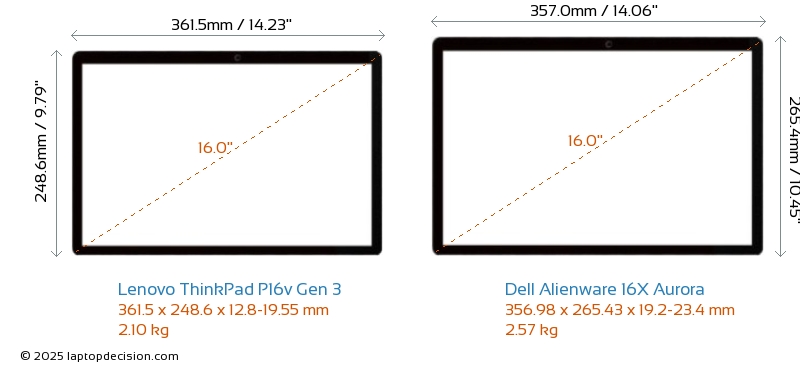 Thunderbolt両方の ThinkPad P16v Gen 3 と Alienware 16X Aurora は Thunderbolt 4 ポートを備えています。