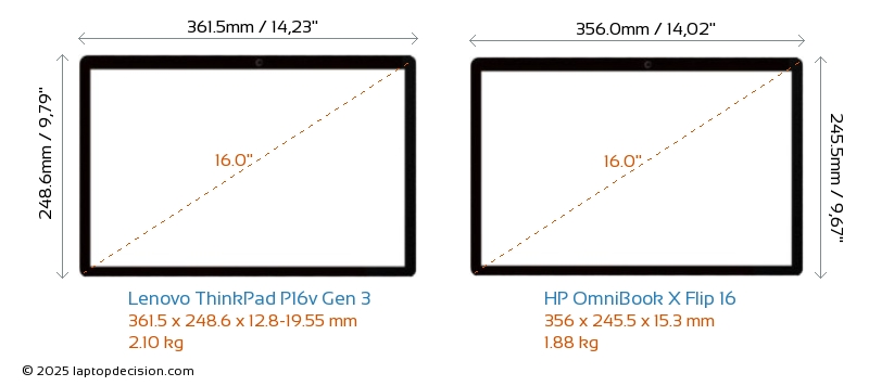 HDMI両方の ThinkPad P16v Gen 3 と OmniBook X Flip 16 は、外部モニターに接続するための HDMI ポート (1x HDMI 2.1) を備えています。