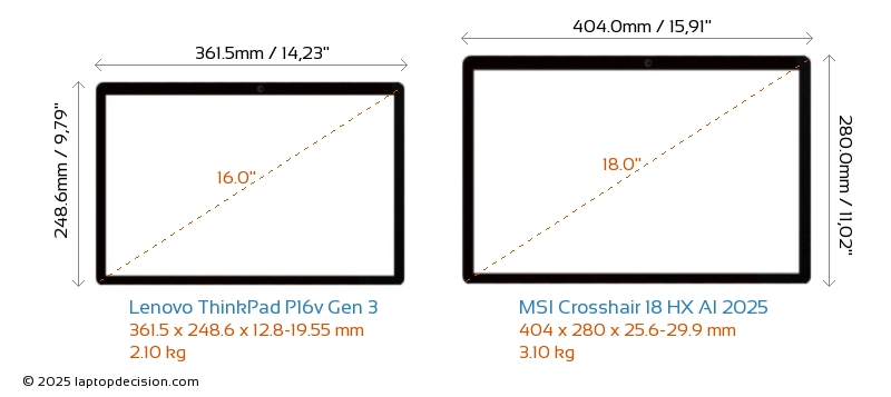 HDMI両方の ThinkPad P16v Gen 3 と Crosshair 18 HX AI 2025 は、外部モニターに接続するための HDMI ポート (1x HDMI 2.1) を備えています。