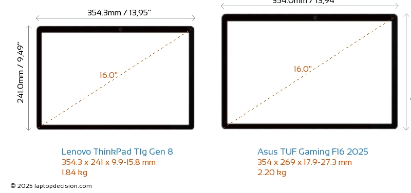 Thunderbolt両方の ThinkPad T1g Gen 8 と TUF Gaming F16 2025 は Thunderbolt ポートを備えています。 ThinkPad T1g Gen 8 は Thunderbolt 5 を持ち、 TUF Gaming F16 2025 は Thunderbolt 4 を持っています。