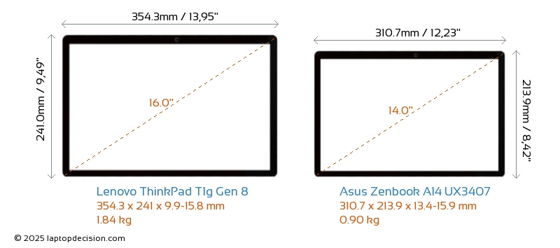 Thunderbolt両方の ThinkPad T1g Gen 8 と Zenbook A14 UX3407 は Thunderbolt ポートを備えています。 ThinkPad T1g Gen 8 は Thunderbolt 5 を持ち、 Zenbook A14 UX3407 は Thunderbolt 4 を持っています。