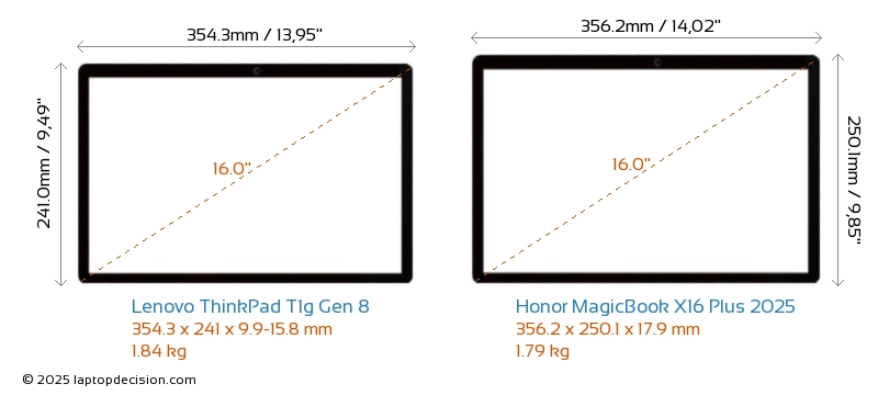 Thunderbolt ThinkPad T1g Gen 8 は、Thunderbolt 5 ポートを備えています。 MagicBook X16 Plus 2025 には Thunderbolt ポートがありません。