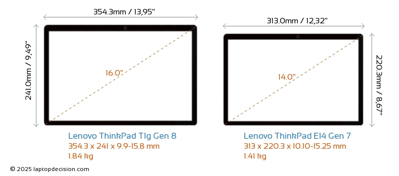 Thunderbolt両方の ThinkPad T1g Gen 8 と ThinkPad E14 Gen 7 は Thunderbolt ポートを備えています。 ThinkPad T1g Gen 8 は Thunderbolt 5 を持ち、 ThinkPad E14 Gen 7 は Thunderbolt 4 を持っています。