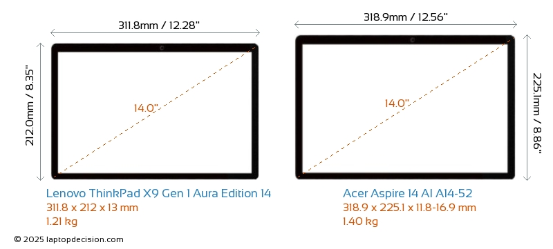HDMI両方の ThinkPad X9 Gen 1 Aura Edition 14 と Aspire 14 AI A14-52 は、外部モニターに接続するための HDMI ポート (1x HDMI 2.1) を備えています。