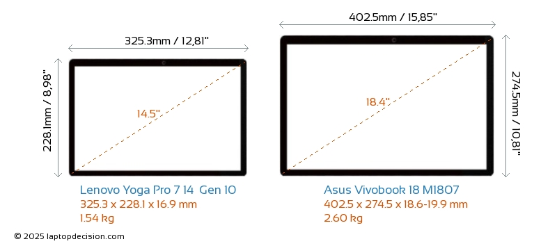 USB両方の Yoga Pro 7 14 Gen 10 と Vivobook 18 M1807 は、2x USB 3.2 の USB-A ポートを備えています。両方の Yoga Pro 7 14 Gen 10 と Vivobook 18 M1807 は、2x USB 4.0 の USB Type-C ポートを備えています。