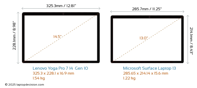 HDMI Yoga Pro 7 14 Gen 10 は、外部モニターに接続するための HDMI ポート (1x HDMI 2.1) を備えています。 Surface Laptop 13 には HDMI ポートがありません。