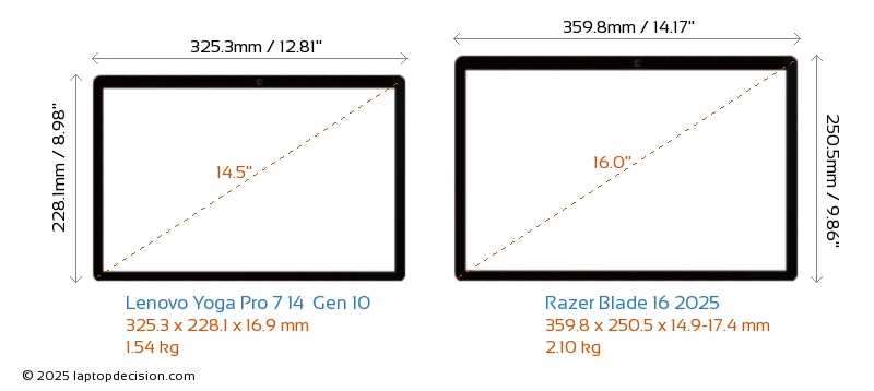 USB両方の Yoga Pro 7 14 Gen 10 と Blade 16 2025 は、USB-A ポートを備えています。 Yoga Pro 7 14 Gen 10 は 2x USB 3.2 USB-A ポートを持ち、 Blade 16 2025 は 3x USB 3.2 USB-A ポートを持っています。両方の Yoga Pro 7 14 Gen 10 と Blade 16 2025 は、2x USB 4.0 の USB Type-C ポートを備えています。