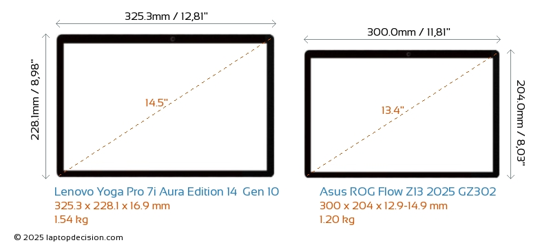 Thunderbolt Yoga Pro 7i Aura Edition 14 Gen 10 は、Thunderbolt 4 ポートを備えています。 ROG Flow Z13 2025 GZ302 には Thunderbolt ポートがありません。