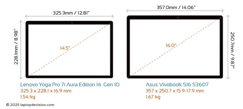 Wifi Yoga Pro 7i Aura Edition 14 Gen 10 はより高度な Wi-Fi 規格 v7 を備え、 Vivobook S16 S3607 (v6E) と比べて、より高速で信頼性の高いワイヤレス接続を提供します。