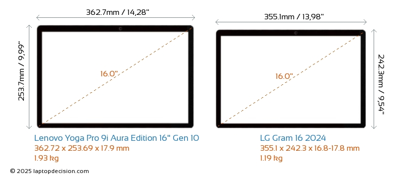 Thunderbolt両方の Yoga Pro 9i Aura Edition 16" Gen 10 と Gram 16 2024 は Thunderbolt 4 ポートを備えています。