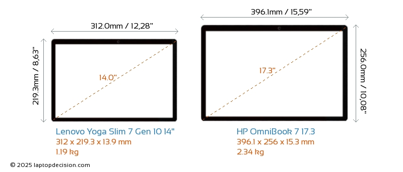 Thunderbolt両方の Yoga Slim 7 Gen 10 14" と OmniBook 7 17.3 は Thunderbolt 4 ポートを備えています。