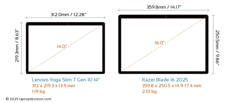 Thunderbolt両方の Yoga Slim 7 Gen 10 14" と Blade 16 2025 は Thunderbolt 4 ポートを備えています。