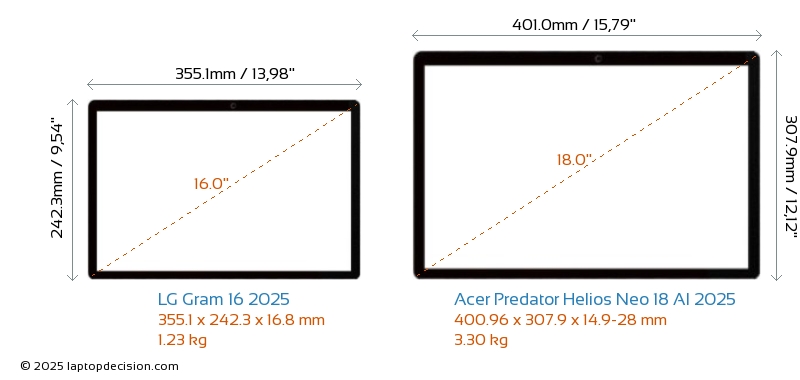HDMI両方の Gram 16 2025 と Predator Helios Neo 18 AI 2025 は、外部モニターに接続するための HDMI ポート (1x HDMI 2.1) を備えています。