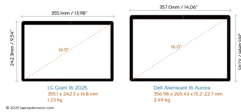 HDMI両方の Gram 16 2025 と Alienware 16 Aurora は、外部モニターに接続するための HDMI ポート (1x HDMI 2.1) を備えています。