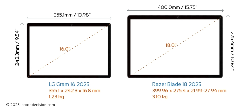 USB両方の Gram 16 2025 と Blade 18 2025 は、USB-A ポートを備えています。 Gram 16 2025 は 2x USB 3.2 USB-A ポートを持ち、 Blade 18 2025 は 3x USB 3.2 USB-A ポートを持っています。両方の Gram 16 2025 と Blade 18 2025 は、2x USB 4.0 の USB Type-C ポートを備えています。