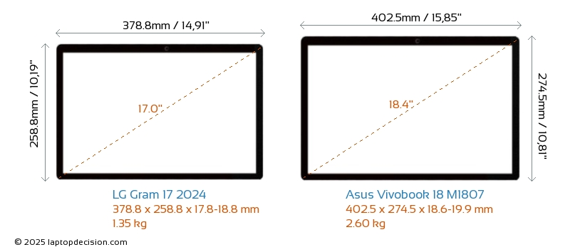 HDMI両方の Gram 17 2024 と Vivobook 18 M1807 は、外部モニターに接続するための HDMI ポート (1x HDMI 2.1) を備えています。