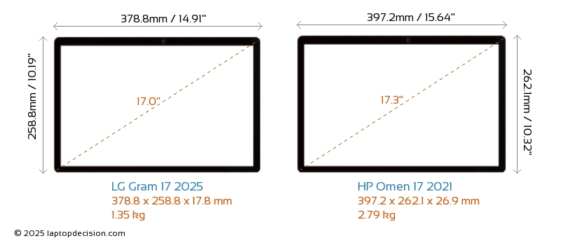HDMI両方の Gram 17 2025 と Omen 17 2021 は、外部モニターに接続するための HDMI ポート (1x HDMI 2.1) を備えています。