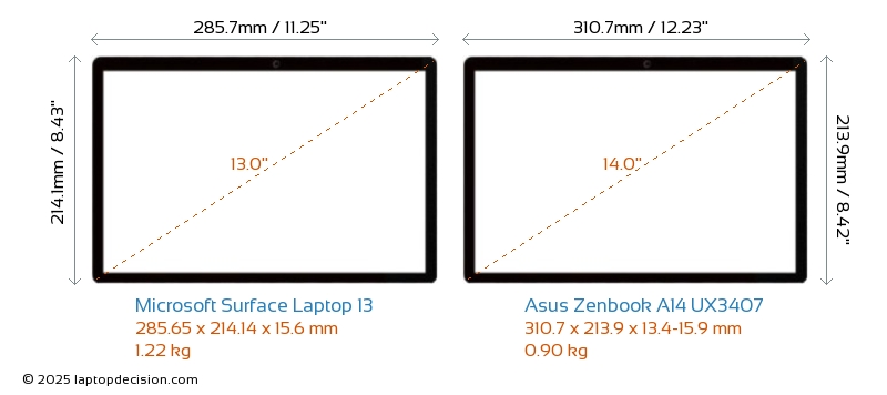 USB両方の Surface Laptop 13 と Zenbook A14 UX3407 は、1x USB 3.2 の USB-A ポートを備えています。両方の Surface Laptop 13 と Zenbook A14 UX3407 は、2x USB 4.0 の USB Type-C ポートを備えています。