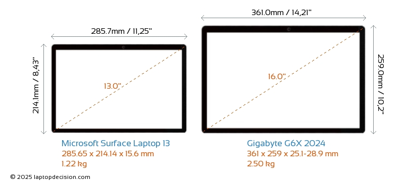 USB両方の Surface Laptop 13 と G6X 2024 は、USB-A ポートを備えています。 Surface Laptop 13 は 1x USB 3.2 USB-A ポートを持ち、 G6X 2024 は 2x USB 3.2 USB-A ポートを持っています。両方の Surface Laptop 13 と G6X 2024 は、USB Type-C ポートを備えています。 Surface Laptop 13 は 2x USB 4.0 USB Type-C ポートを持ち、 G6X 2024 は 2x USB 3.2 USB Type-C ポートを持っています。