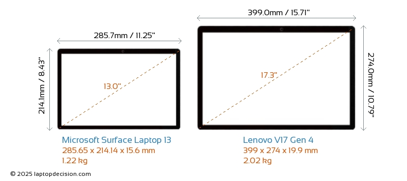USB両方の Surface Laptop 13 と V17 Gen 4 は、USB-A ポートを備えています。 Surface Laptop 13 は 1x USB 3.2 USB-A ポートを持ち、 V17 Gen 4 は 2x USB 3.2 USB-A ポートを持っています。両方の Surface Laptop 13 と V17 Gen 4 は、USB Type-C ポートを備えています。 Surface Laptop 13 は 2x USB 4.0 USB Type-C ポートを持ち、 V17 Gen 4 は 1x USB 3.2 USB Type-C ポートを持っています。