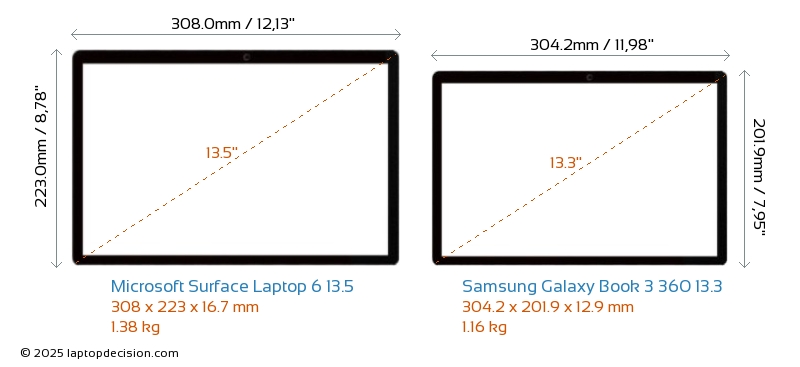 Thunderbolt両方の Surface Laptop 6 13.5 と Galaxy Book 3 360 13.3 は Thunderbolt 4 ポートを備えています。