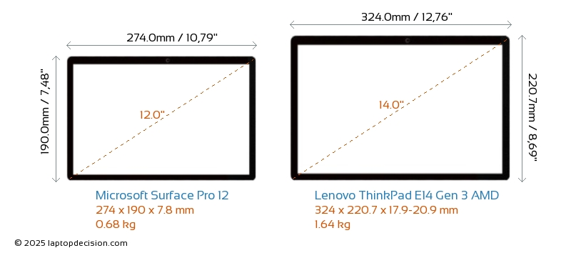 HDMIThinkPad E14 Gen 3 AMD は、外部モニターに接続するための HDMI ポート (1x HDMI 1.4) を備えています。 Surface Pro 12 には HDMI ポートがありません。