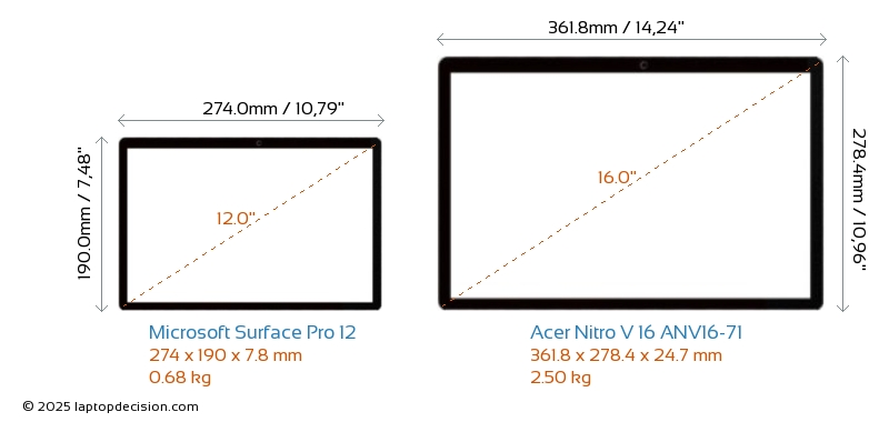 HDMI Nitro V 16 ANV16-71 は、外部モニターに接続するための HDMI ポート (1x HDMI 2.1) を備えています。 Surface Pro 12 には HDMI ポートがありません。