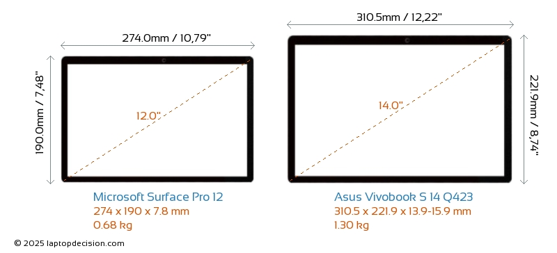 USB Vivobook S 14 Q423 は、2x USB 3.2 USB-A ポートを備えています。 Surface Pro 12 は、USB-A ポートがありません。両方の Surface Pro 12 と Vivobook S 14 Q423 は、2x USB 4.0 の USB Type-C ポートを備えています。