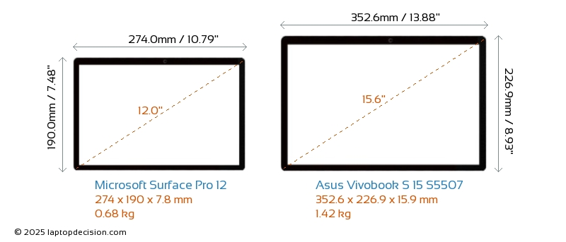 USB Vivobook S 15 S5507 は、2x USB 3.2 USB-A ポートを備えています。 Surface Pro 12 は、USB-A ポートがありません。両方の Surface Pro 12 と Vivobook S 15 S5507 は、2x USB 4.0 の USB Type-C ポートを備えています。
