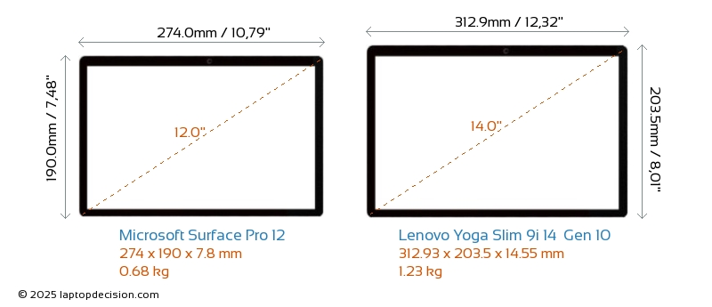HDMINeither Surface Pro 12 nor Yoga Slim 9i 14 Gen 10 has an HDMI port for connecting to external monitors. Surface Pro 12 と Yoga Slim 9i 14 Gen 10 のどちらにも、外部モニターに接続するための HDMI ポートがありません。