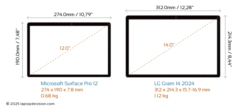 HDMI Gram 14 2024 は、外部モニターに接続するための HDMI ポート (1x HDMI 2.1) を備えています。 Surface Pro 12 には HDMI ポートがありません。